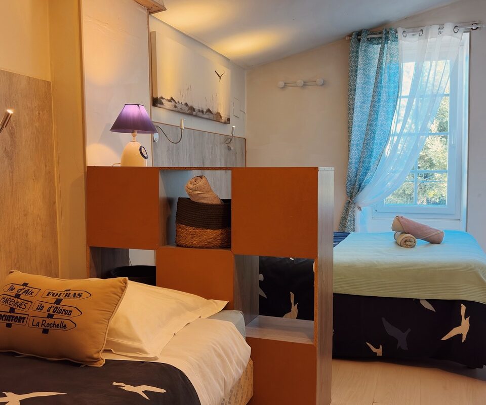 Il est parfois compliqué de voyager en famille, de trouver des hébergements adaptés, surtout à vélo… La suite familiale «Océane»  (22 m²) vous accueille jusqu’à 5 personnes : idéale pour les familles jusqu’à 3 enfants ou les petits groupes d’amis.